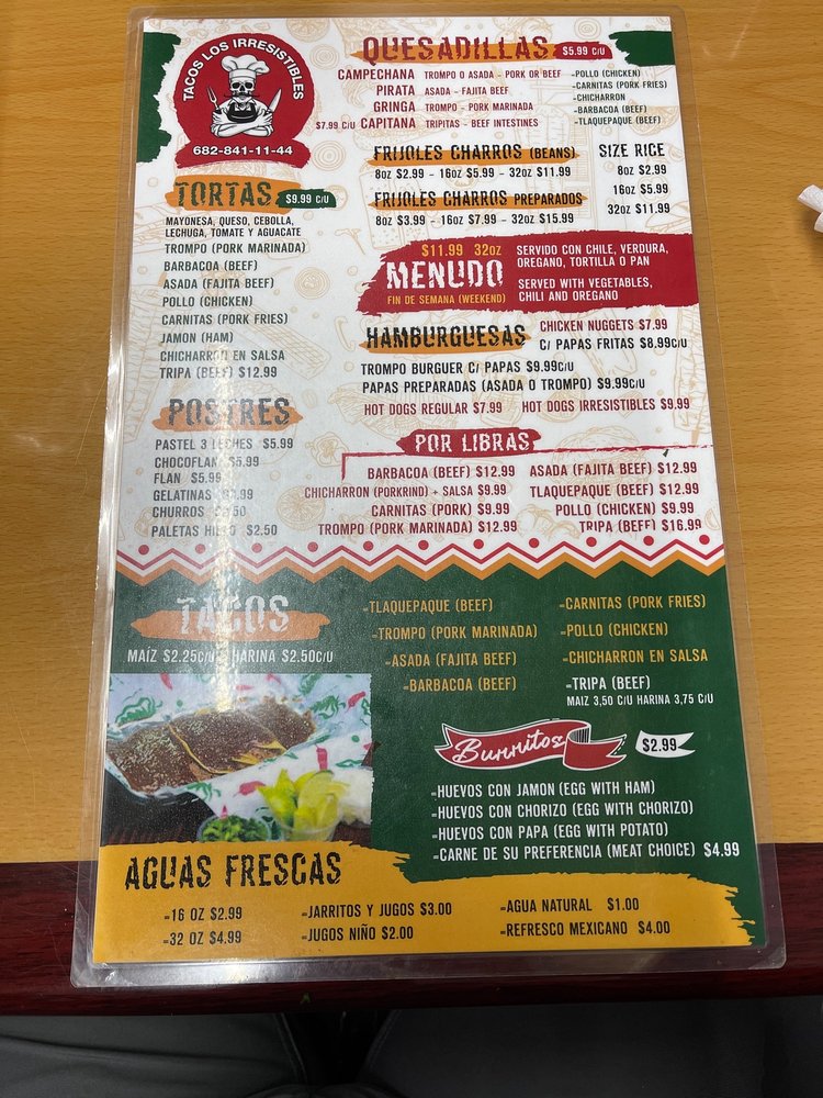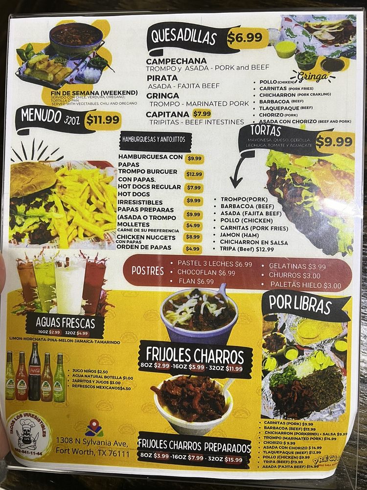 Welcome to Tacos Los Irresistibles, a hidden gem located at 1308 N Sylvania Ave, Fort Worth, TX. A culinary haven for taco enthusiasts, this spot boasts an array of mouthwatering offerings, from the flavorful Al Pastor trompos to the crispy Quesadilla Gringa Trompo. Each taco, especially on the coveted $1 taco days, is packed with seasoned goodness that leaves patrons craving more.